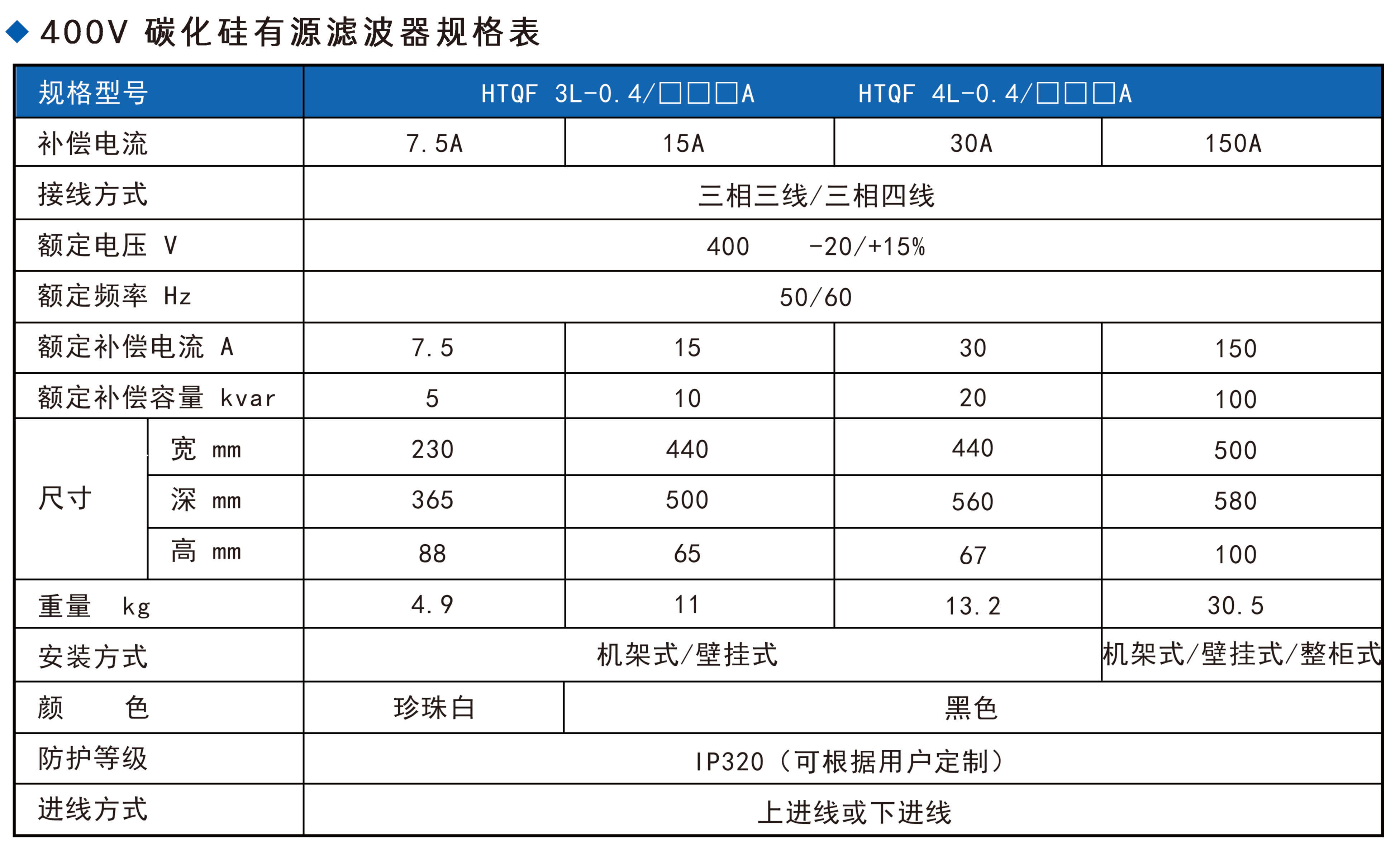 华天有源电力滤波器HTQF是山大华天自主开发研制的一种用于动态抑制电力谐波、动态补偿无功功率并校正三相不平衡的电力电子设备。有源电力滤波器相当于一个谐波电流发生器,可跟踪非线性负载中的谐波电流分量,产生与之等幅反相的谐波电流,从而抵消非线性负载产生的谐波电流。实现改善电能质量、提高供用电设备效率、降低电网损耗的效能。