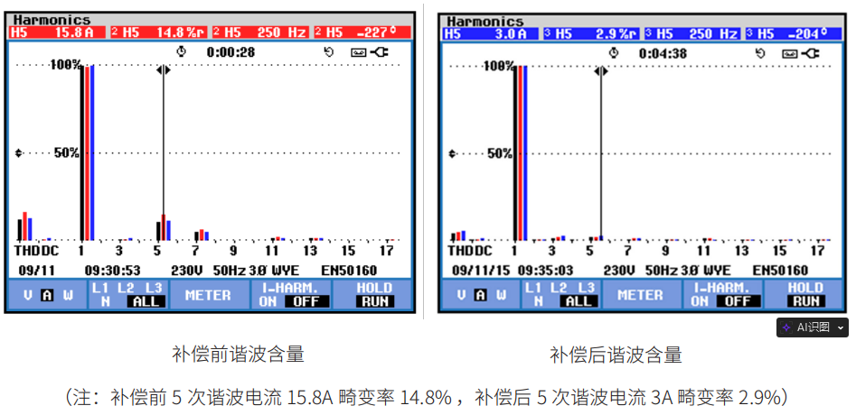 配电台区统一电能质量调节器能够快速的补偿由于负载不平衡所产生的负序电流,始终保证流入电网的三相电流平衡。