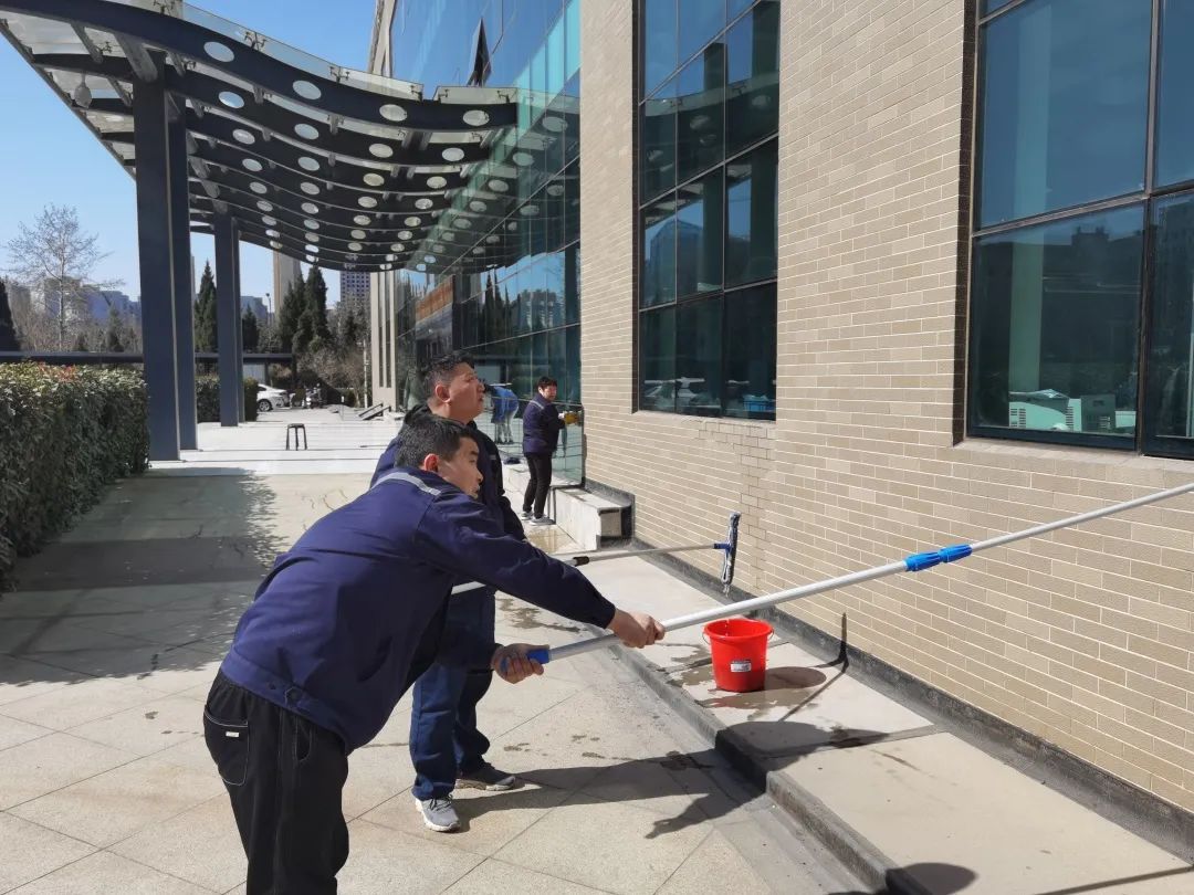 华天各部门员工代表自愿组成志愿者服务队,进行义务劳动,从办公区到停车场,从大楼外墙到边边角角,将公司内外打扫得干干净净,焕然一新。