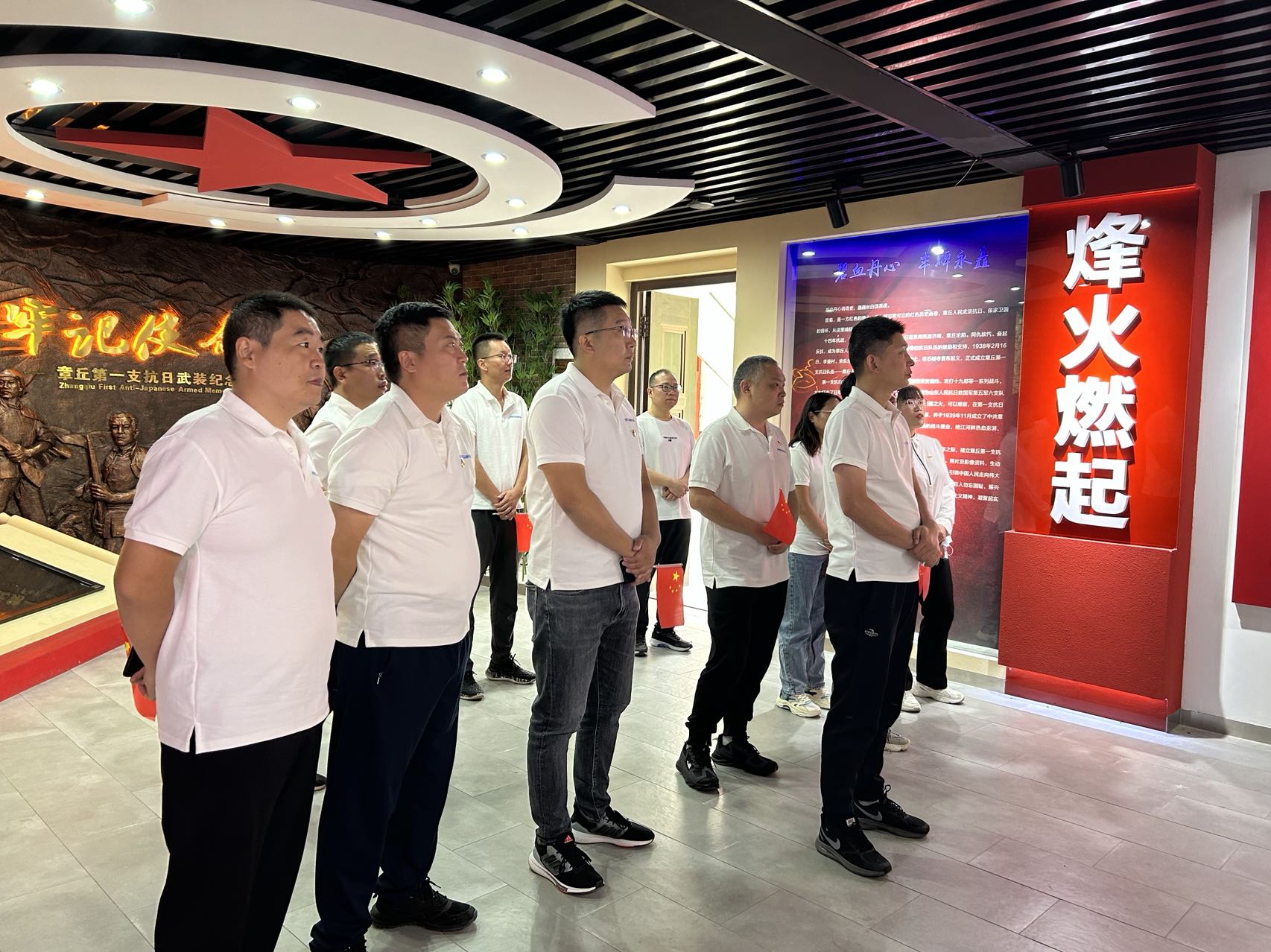 章丘第一支抗日武装革命纪念馆纪念馆位于章丘区普集街道三山峪村,章丘第一支抗日武装——章丘人民抗日救国军就诞生在这里,被称之为“章丘的井冈山”。在讲解员的引领和解说下,大家参观学习了烽火燃起、救亡图存、浴血奋战、精神丰碑、薪火相传等五个展厅,观看了抗日英雄红色影像。纪念馆用珍贵详实的历史文物、照片及影像资料,生动再现了在民族危难关头,中国共产党人勇立潮头,高举抗战旗帜,引领中国人民走向伟大胜利的光辉历史。李曼村、宋怡翔、方子成等革命先辈为了国家的生死存亡,为了实现革命理想不惜牺牲一切的爱国主义情怀和大无畏精神深深感动、激励着在场的每位同志。